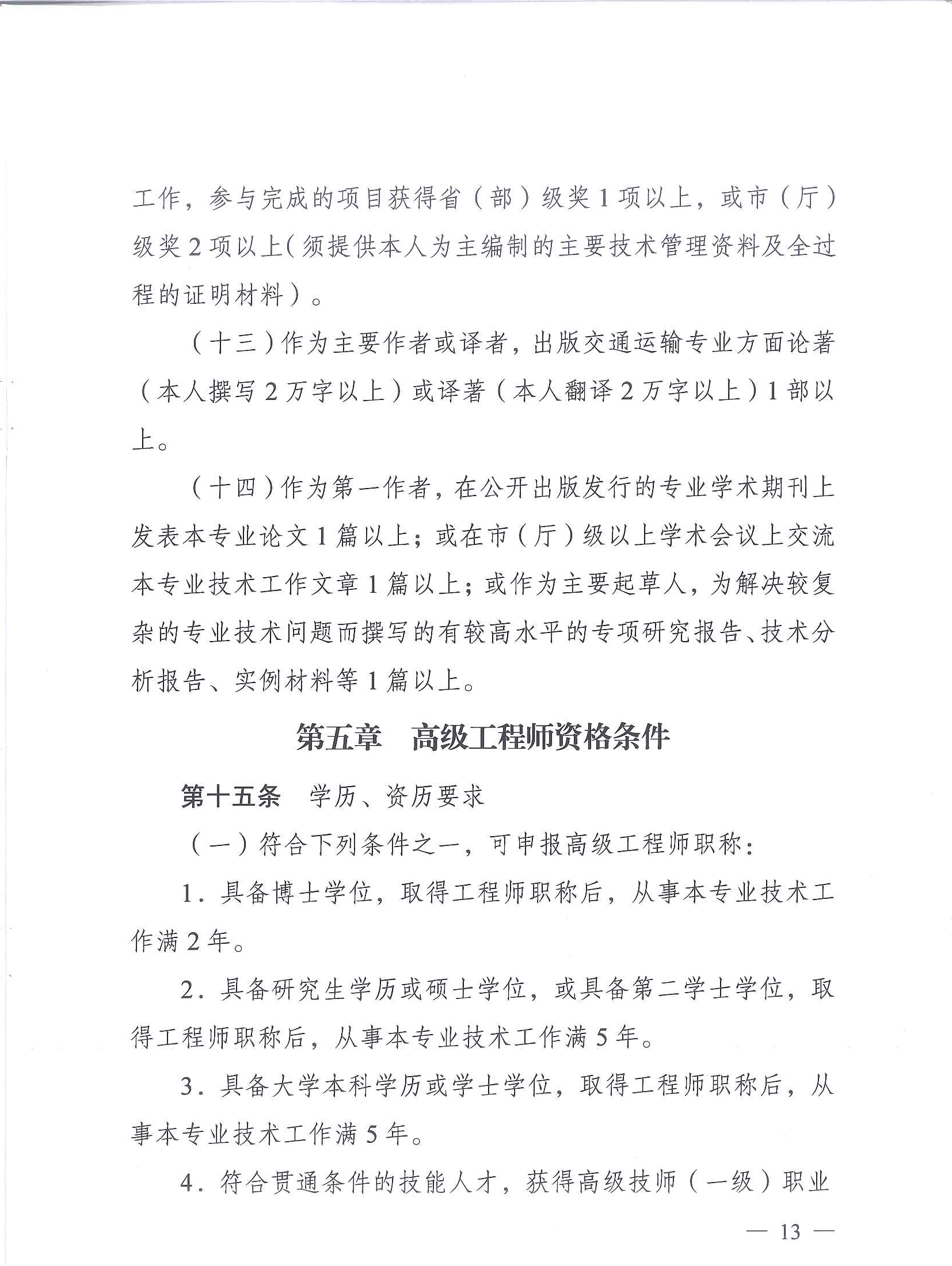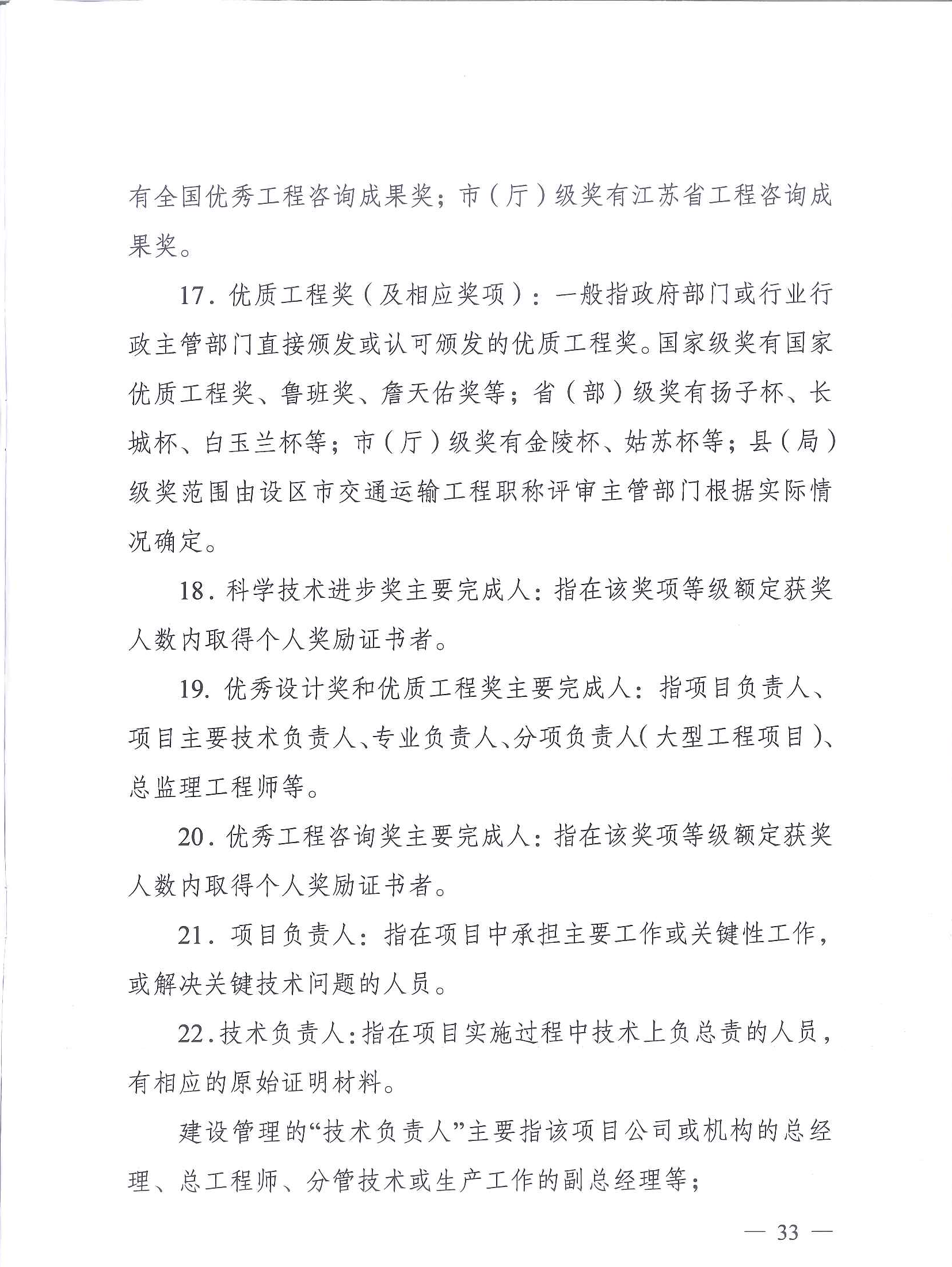 江苏省交通运输工程专业技术资格条件(试行)(苏职称【2022】3号)