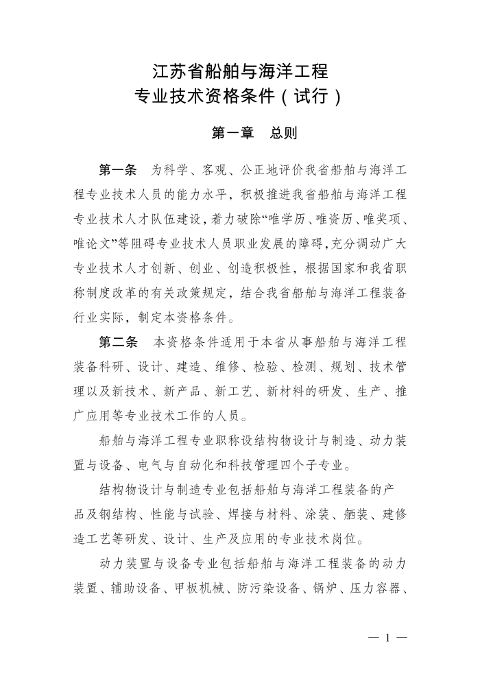 江苏省船舶与海洋工程专业技术资格条件(试行)(苏职称〔2021〕22号)