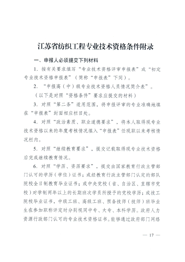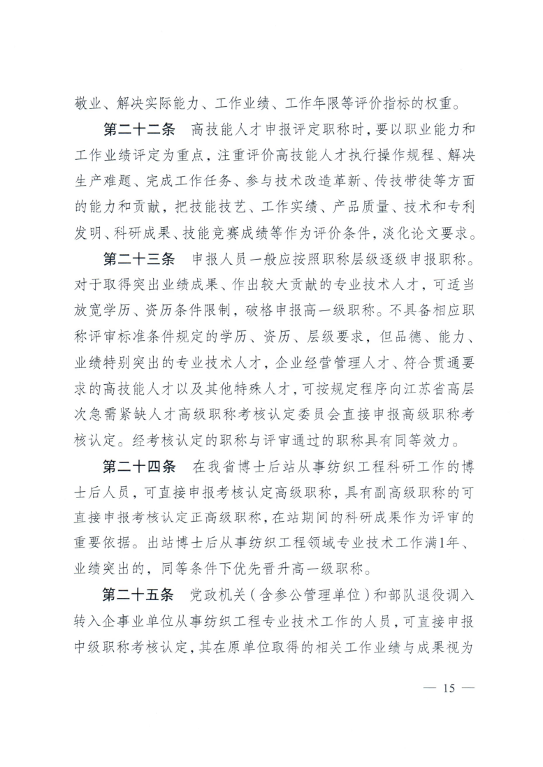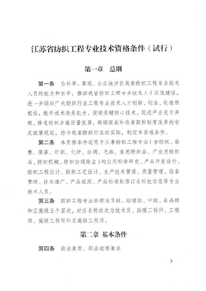 江苏省纺织工程专业技术资格条件(试行)(苏职称〔2021〕16号)