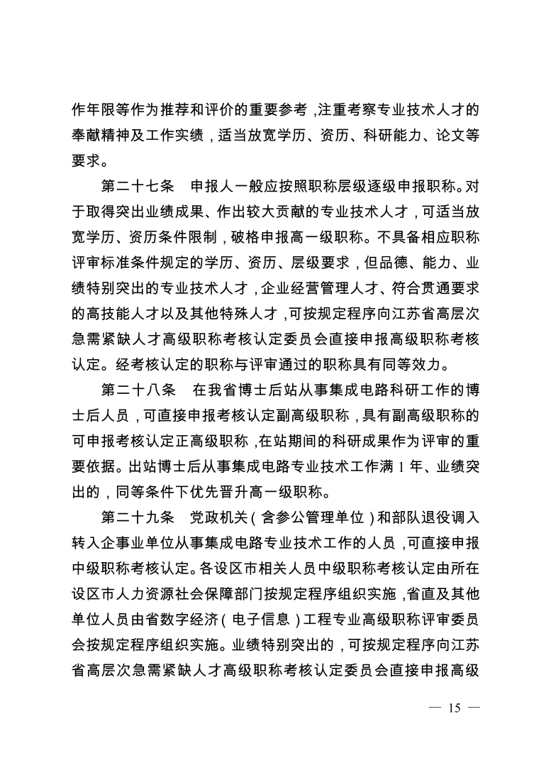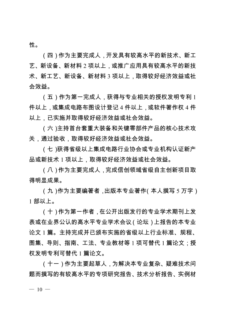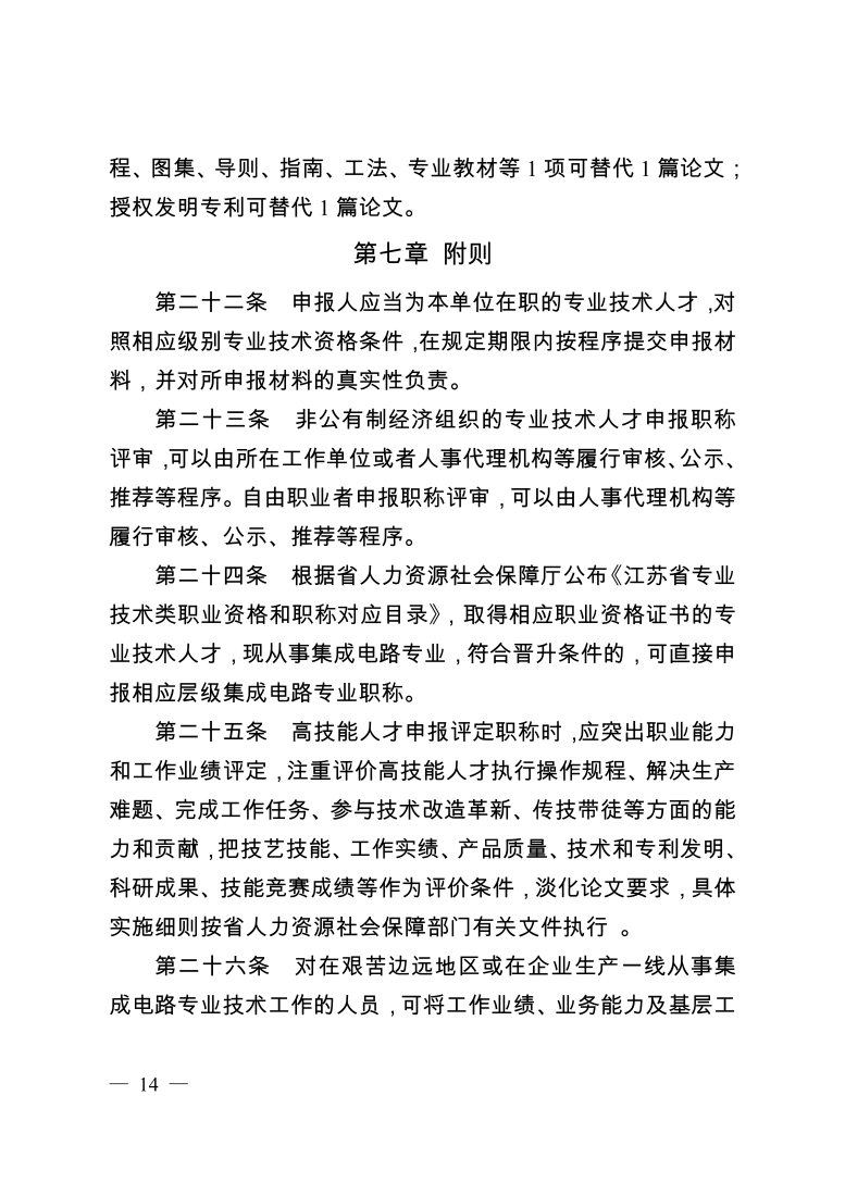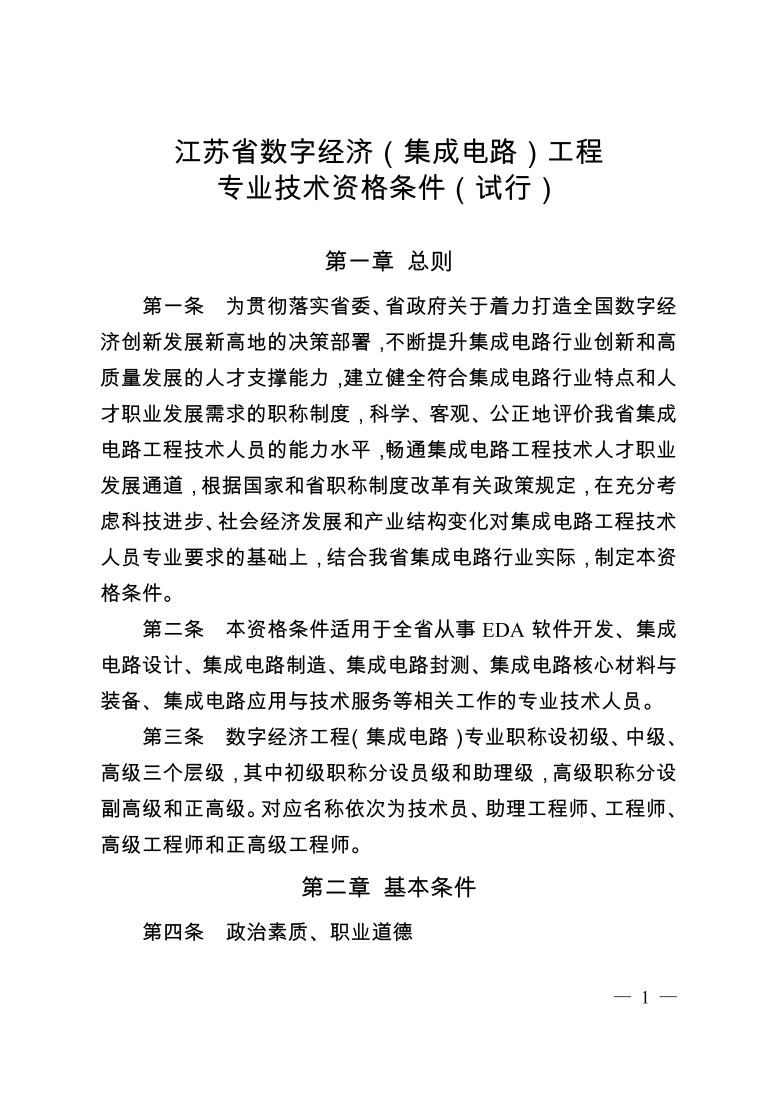 江苏省数字经济(集成电路)工程 专业技术资格条件(试行)(苏职称〔2022〕10号)