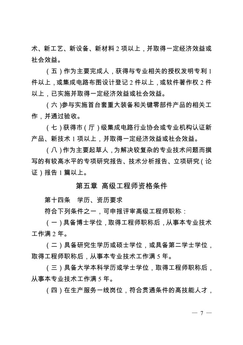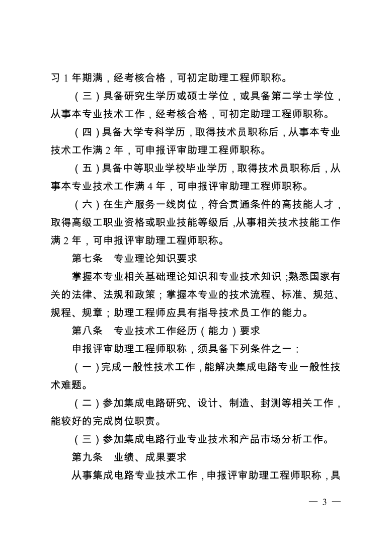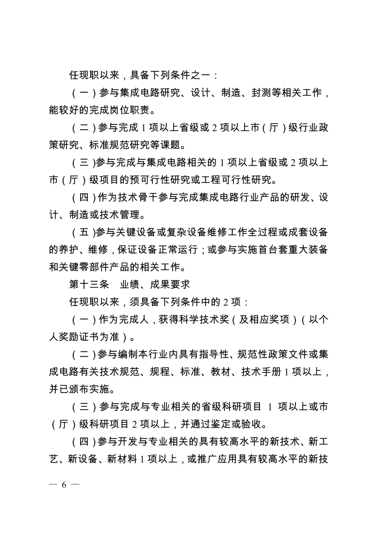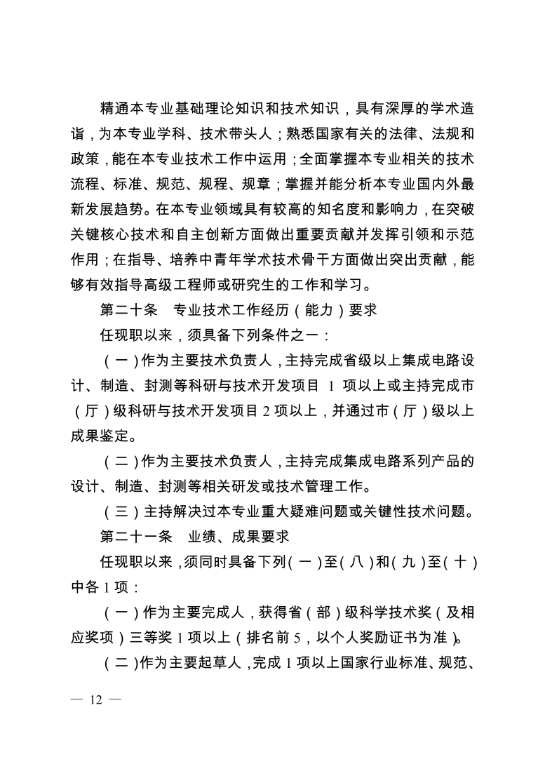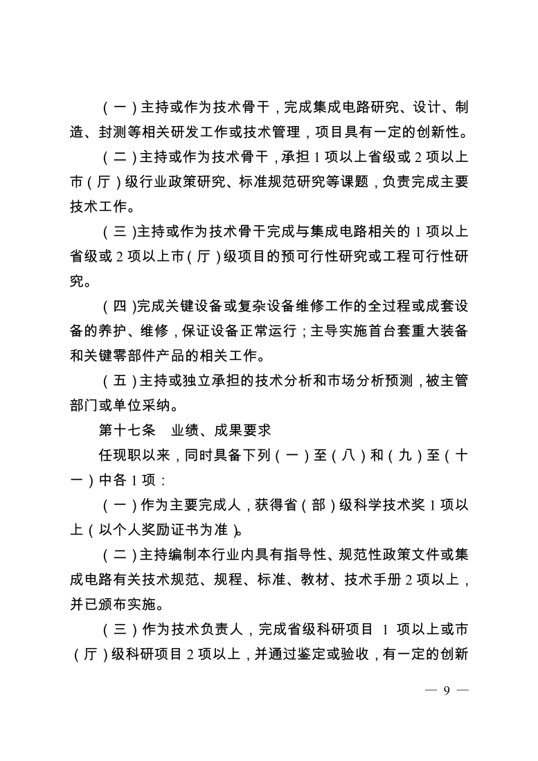 江苏省数字经济(集成电路)工程 专业技术资格条件(试行)(苏职称〔2022〕10号)