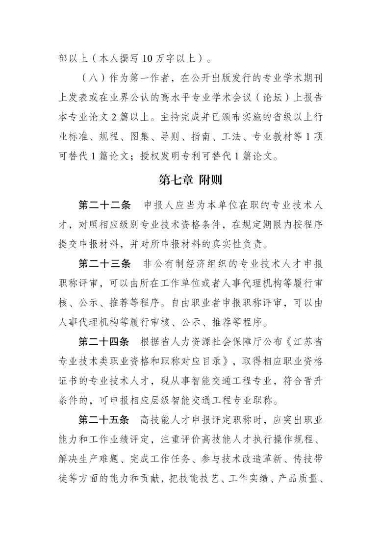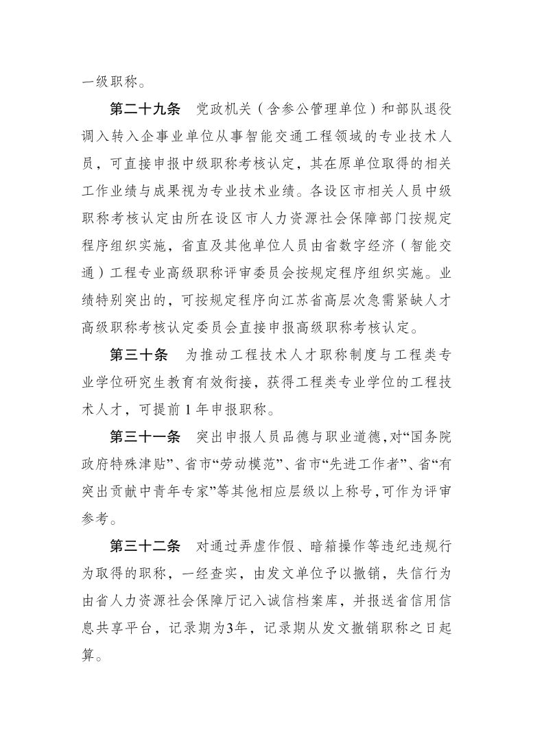江苏省数字经济(智能交通)工程专业技术资格条件(试行)(苏职称〔2022〕19号)