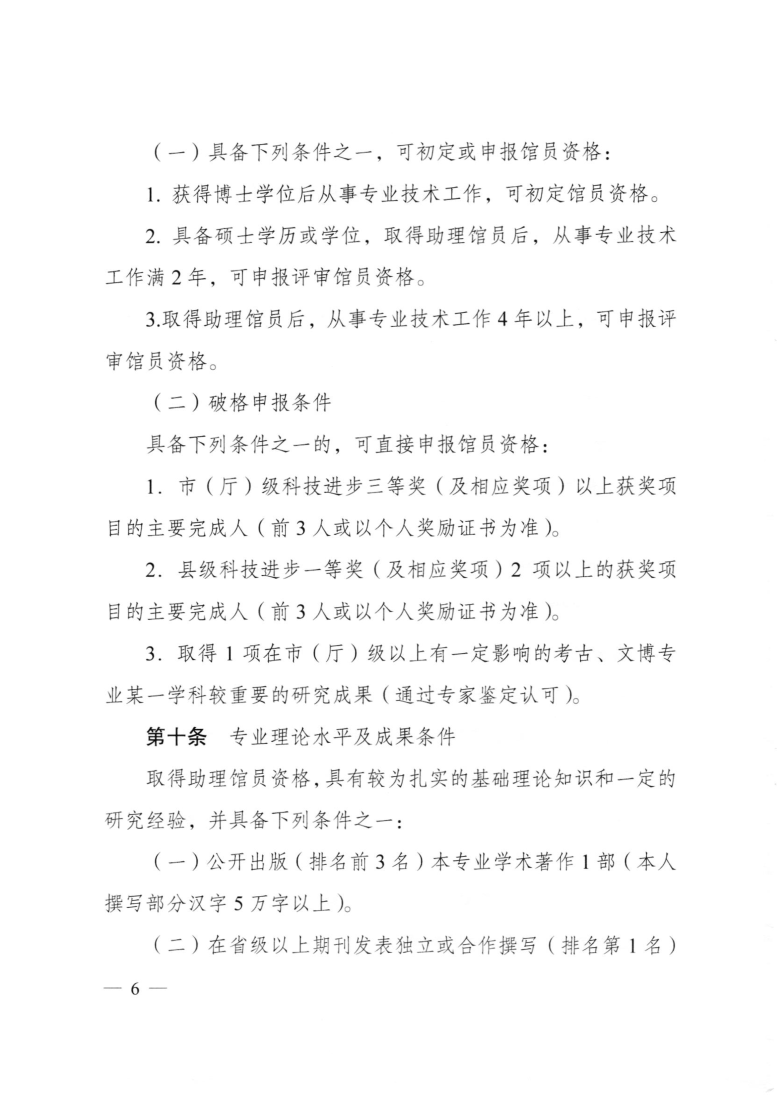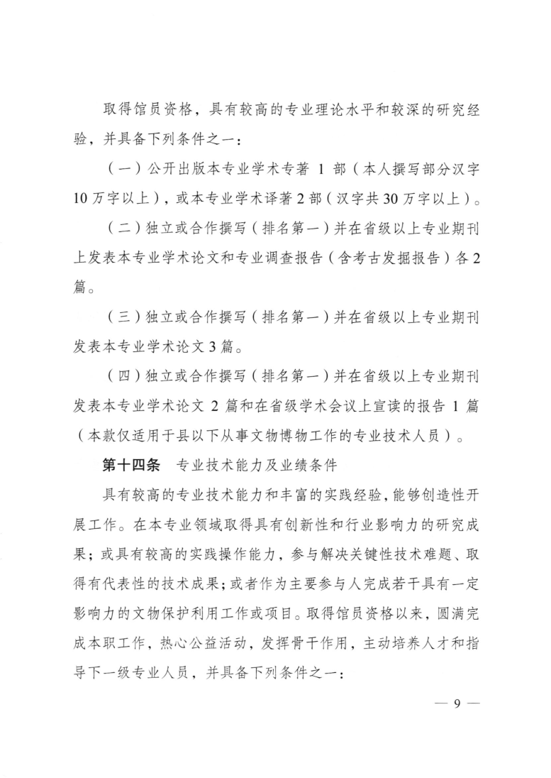 江苏省文物博物专业技术资格条件(试行)(苏职称〔2021〕68号)