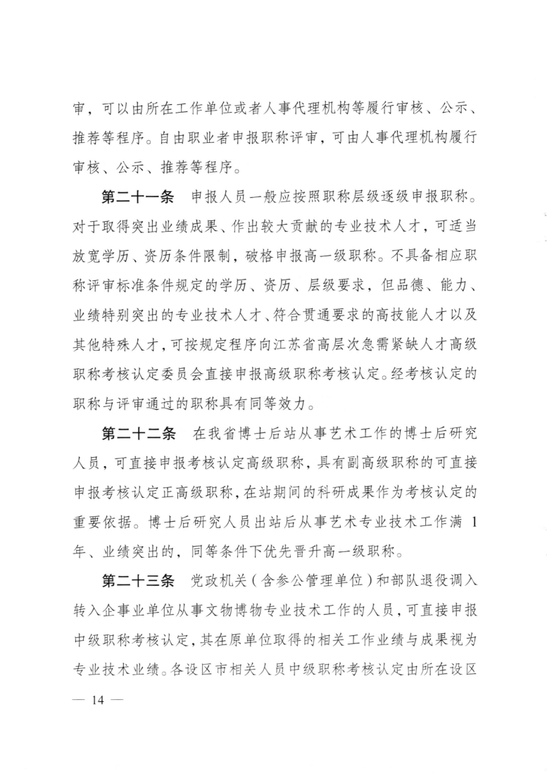 江苏省文学创作专业技术资格条件(苏职称〔2021〕14号)