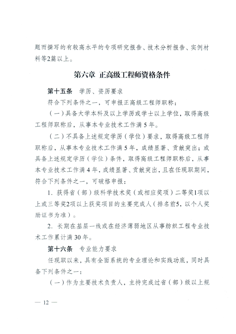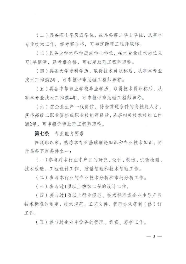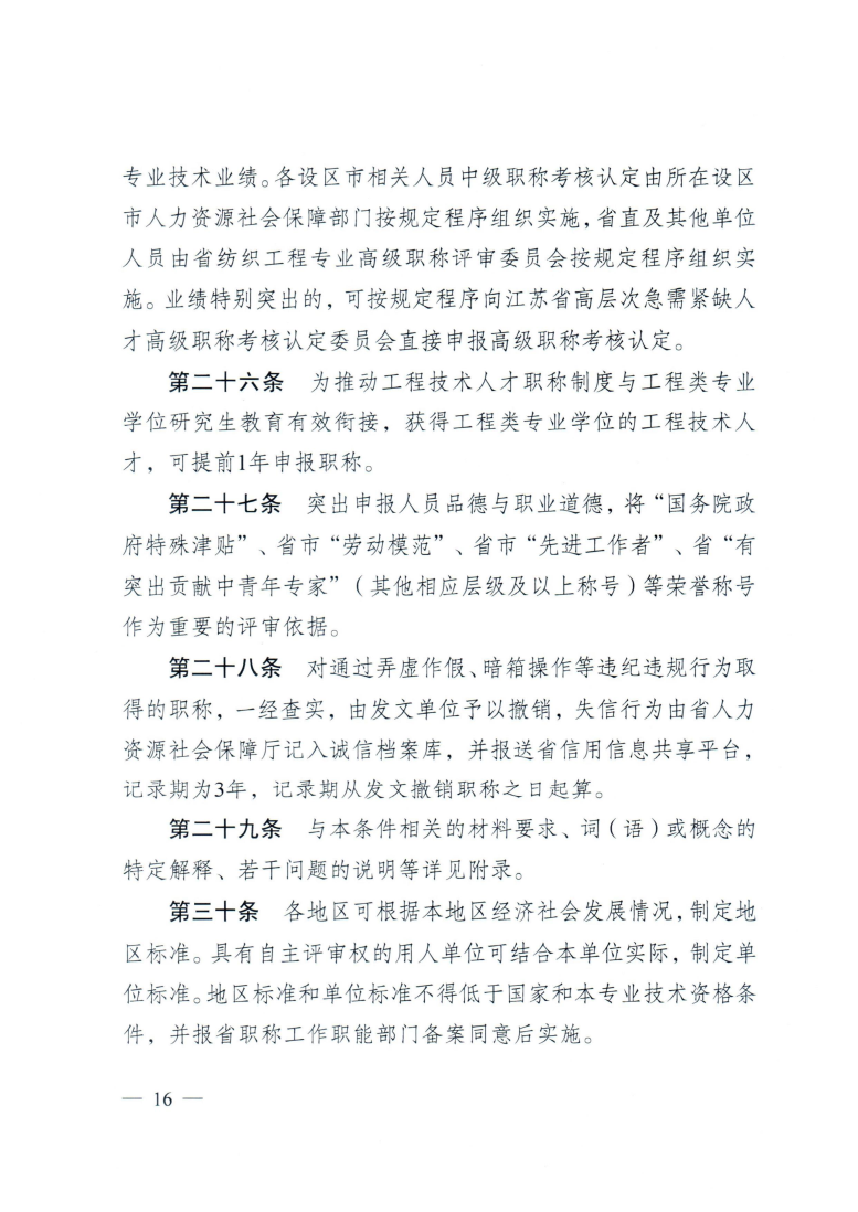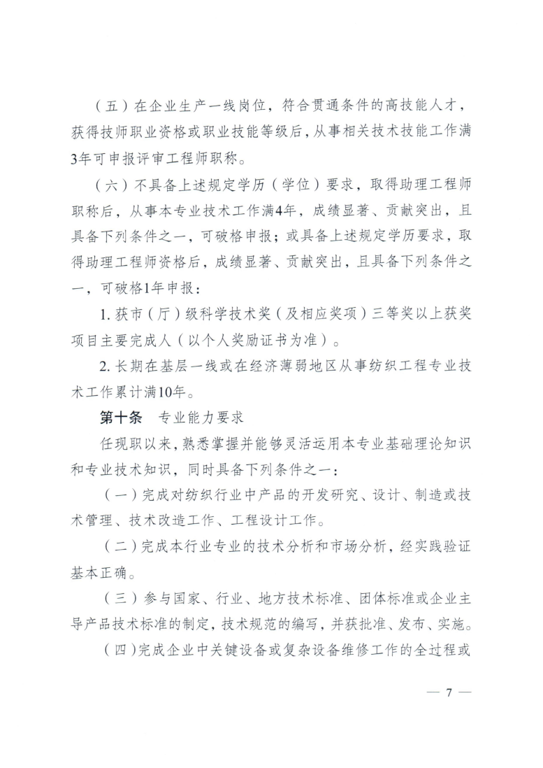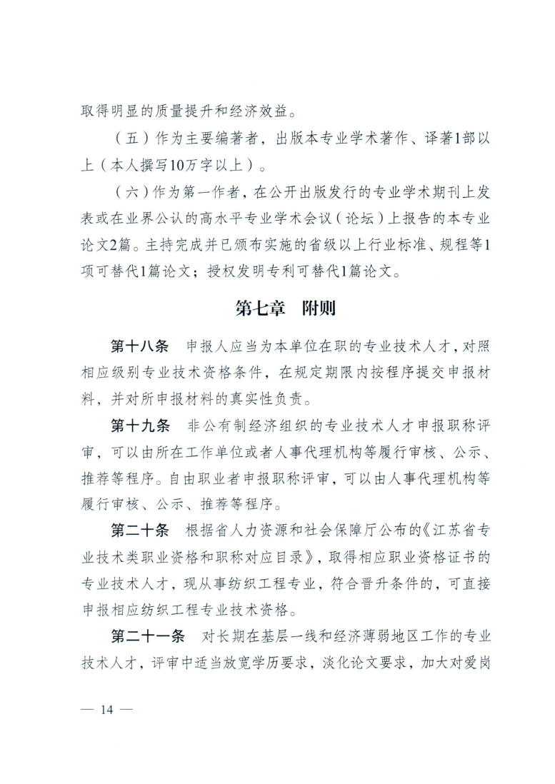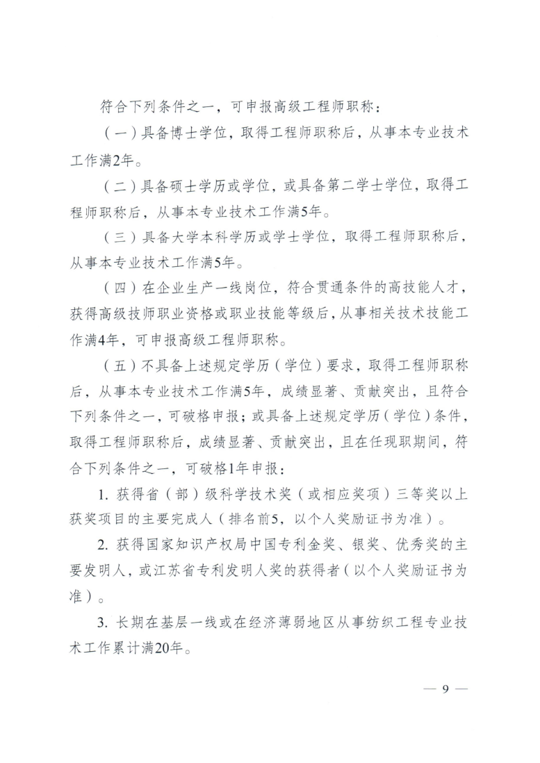 江苏省纺织工程专业技术资格条件(试行)(苏职称〔2021〕16号)