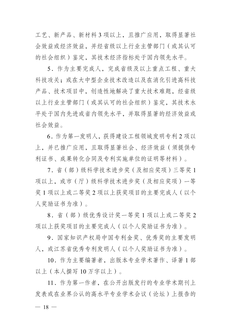 江苏省建设工程专业技术资格条件(试行)(苏职称〔2021〕5号)
