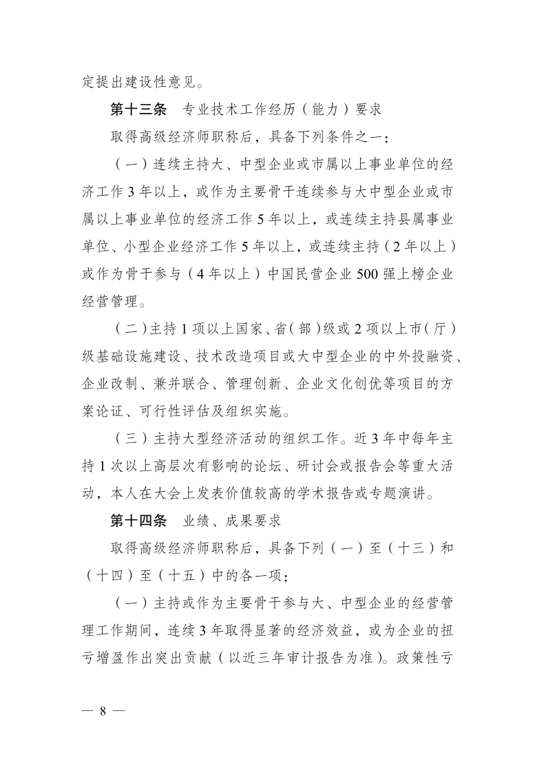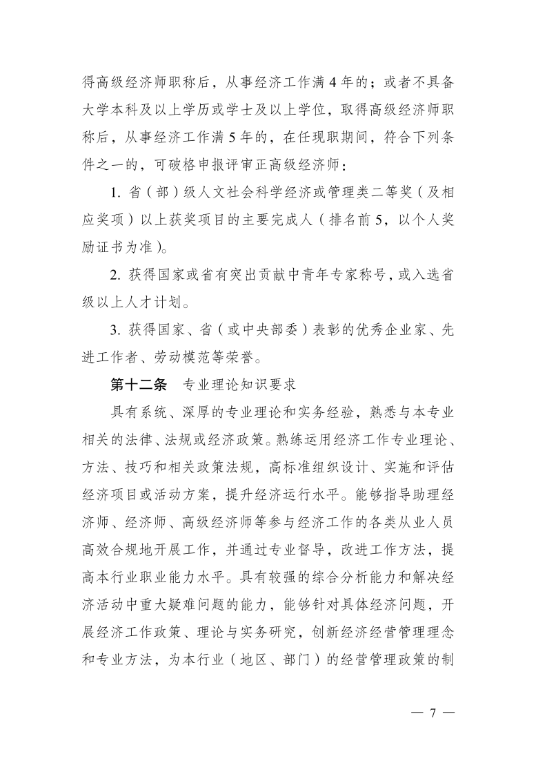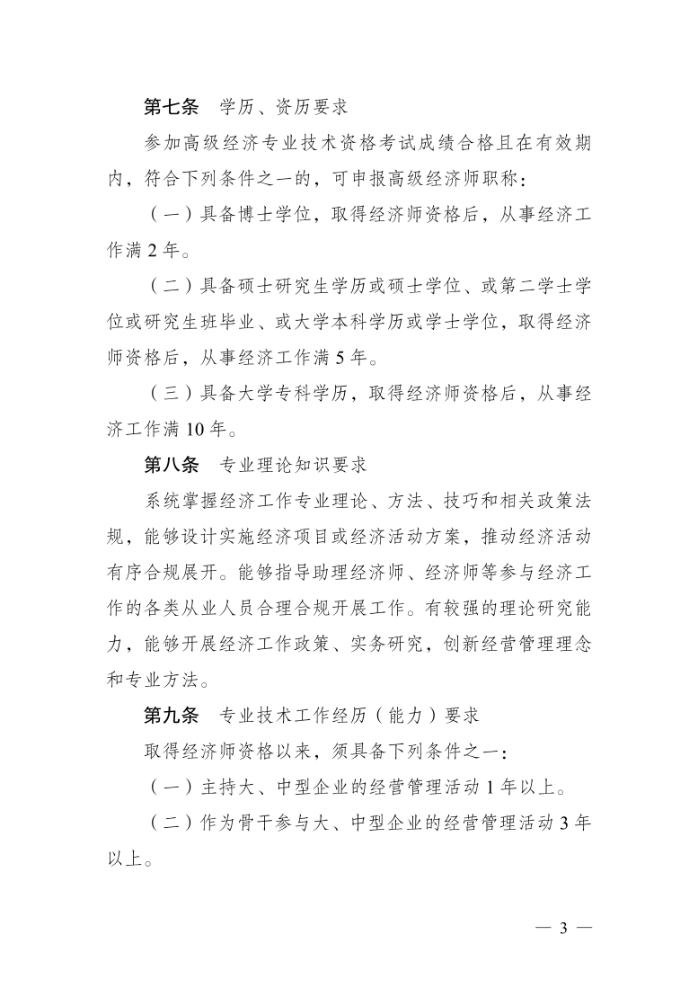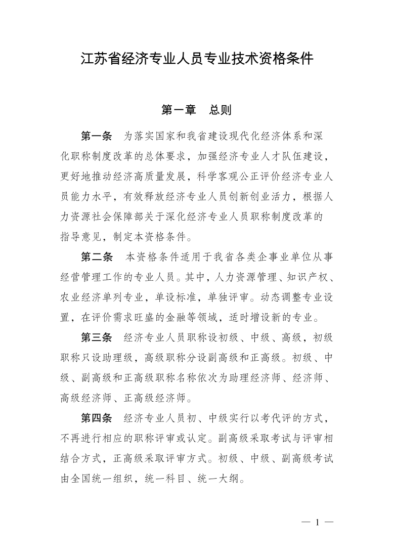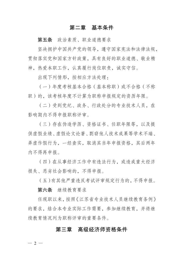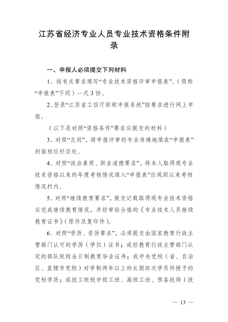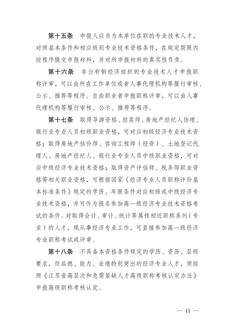 江苏省经济专业人员专业技术资格条件(苏职称〔2021〕67号)