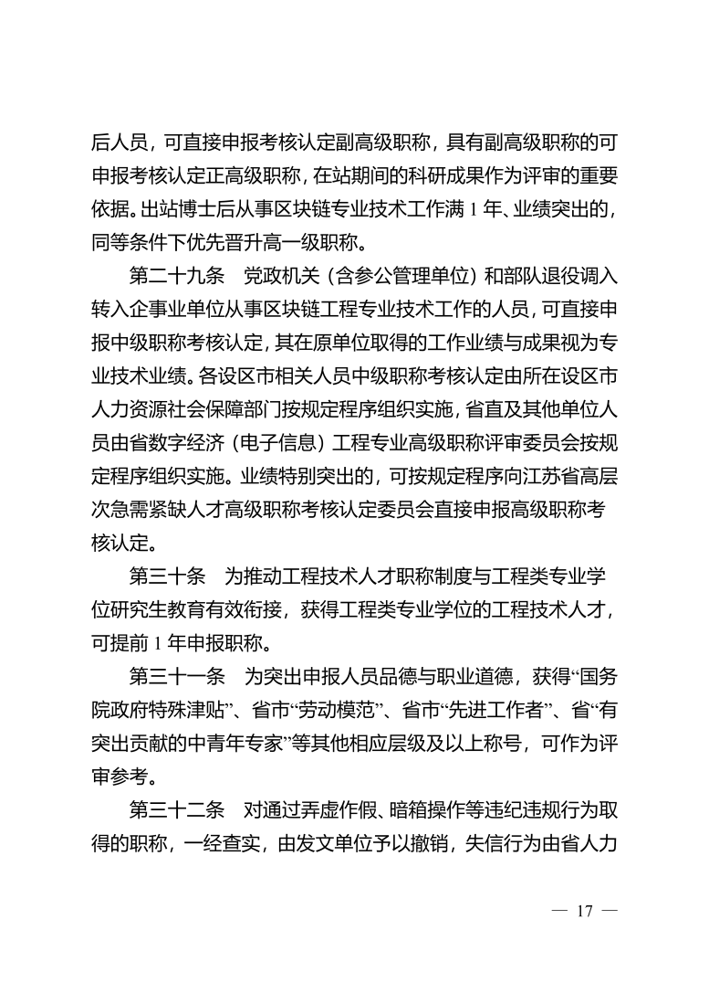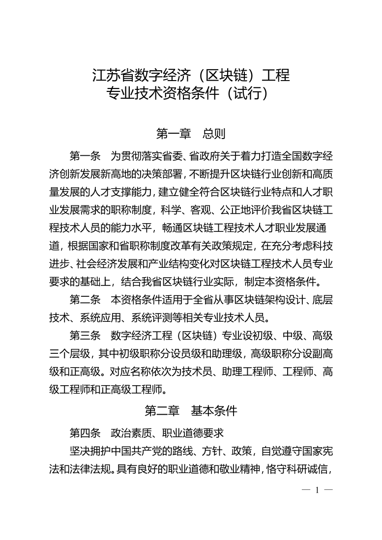 江苏省数字经济(区块链)工程专业技术资格条件(试行)(苏职称〔2022〕12号)