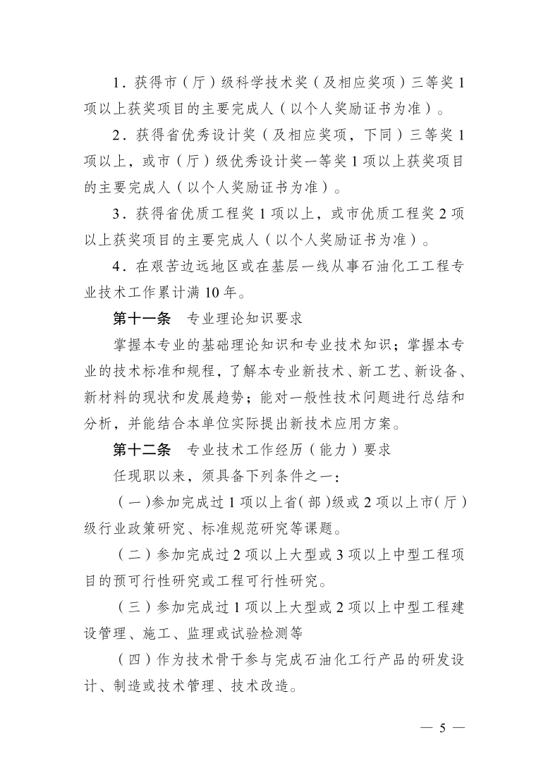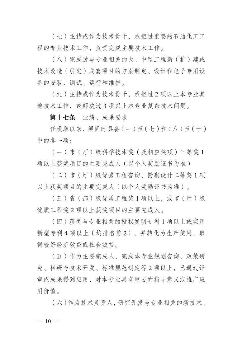 江苏省石油化工工程专业技术资格条件(试行)(苏职称〔2021〕29号)
