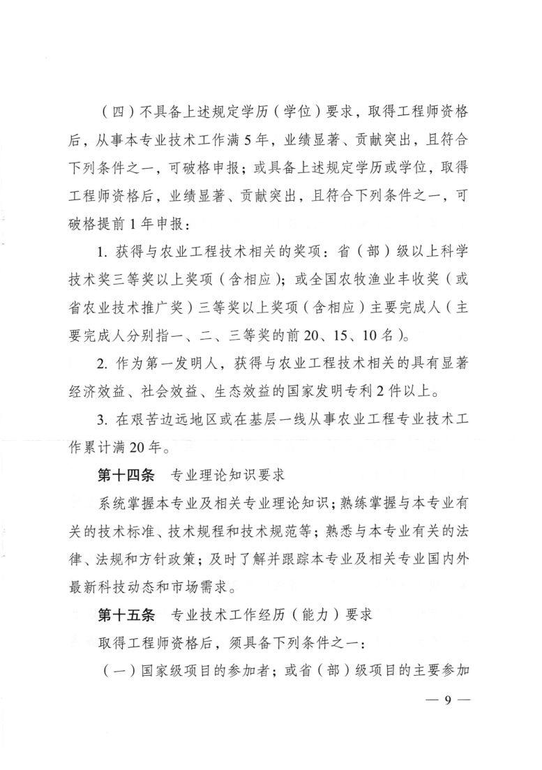 江苏省农业工程专业技术资格条件(试行)(2021年8月31日印发)