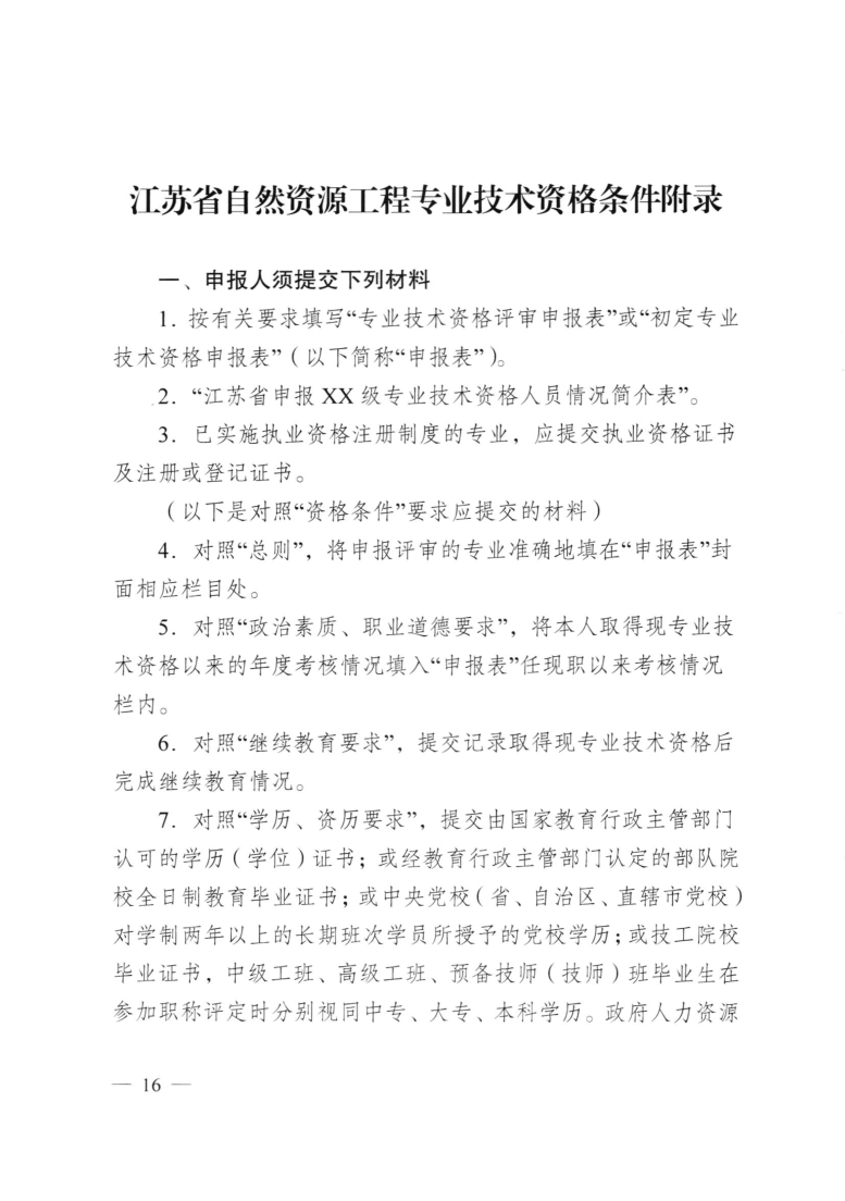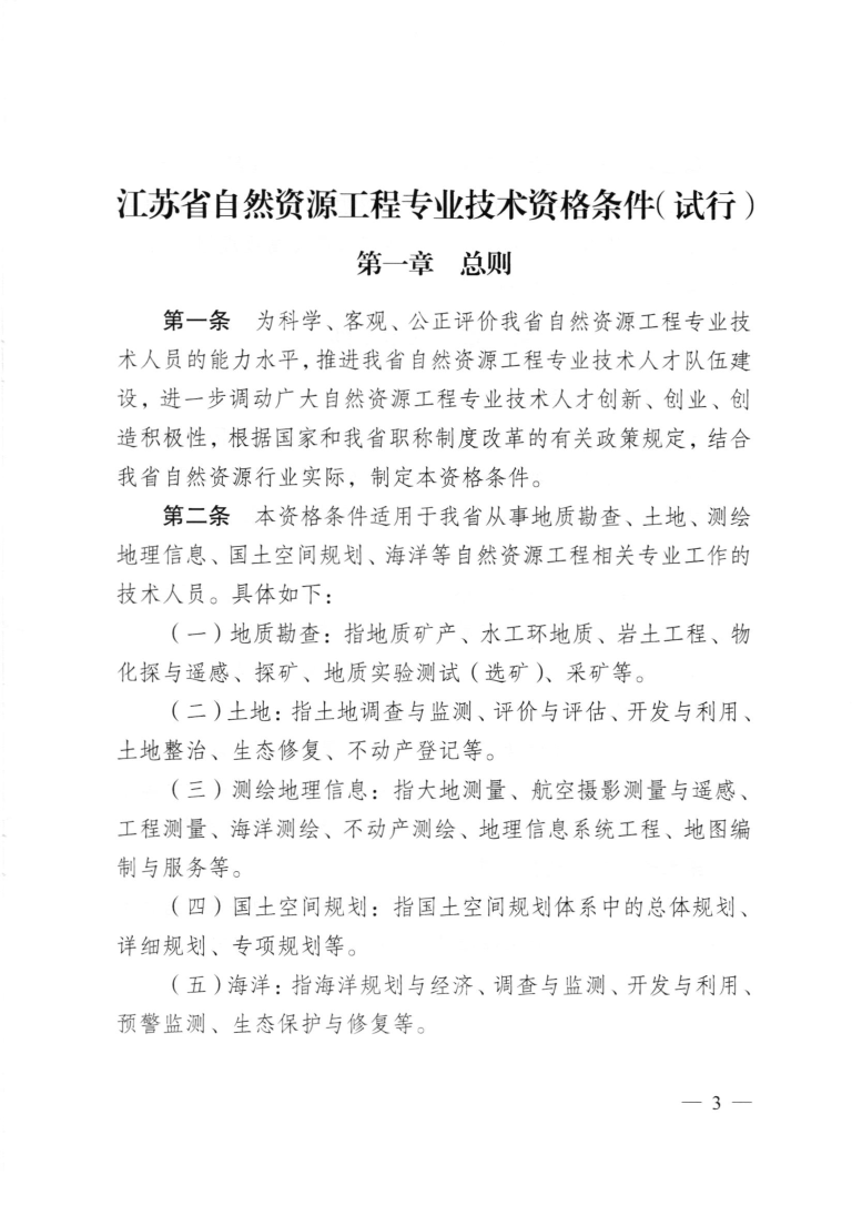 江苏省自然资源工程专业技术资格条件(试行)(苏职称〔2021〕35号)