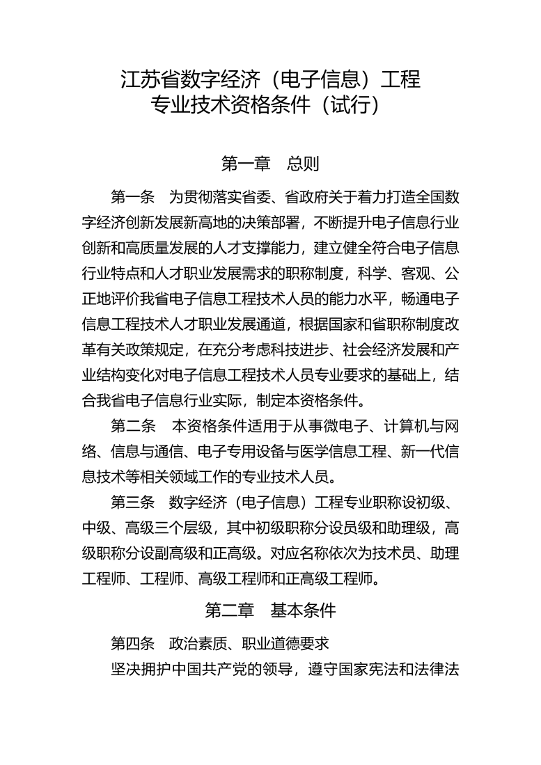 江苏省数字经济(电子信息)工程专业技术资格条件(试行)(苏职称〔2022〕16号)