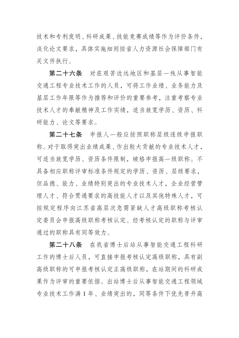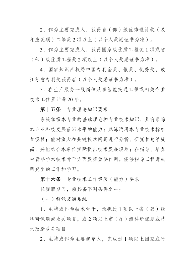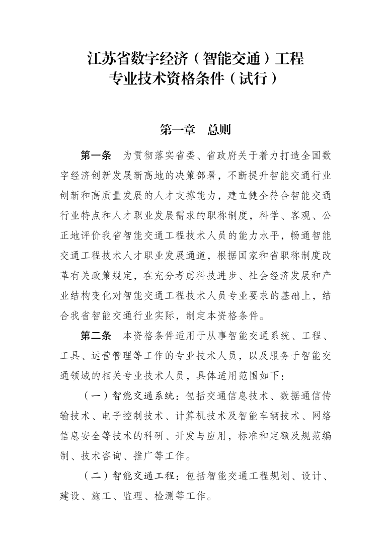 江苏省数字经济(智能交通)工程专业技术资格条件(试行)(苏职称〔2022〕19号)