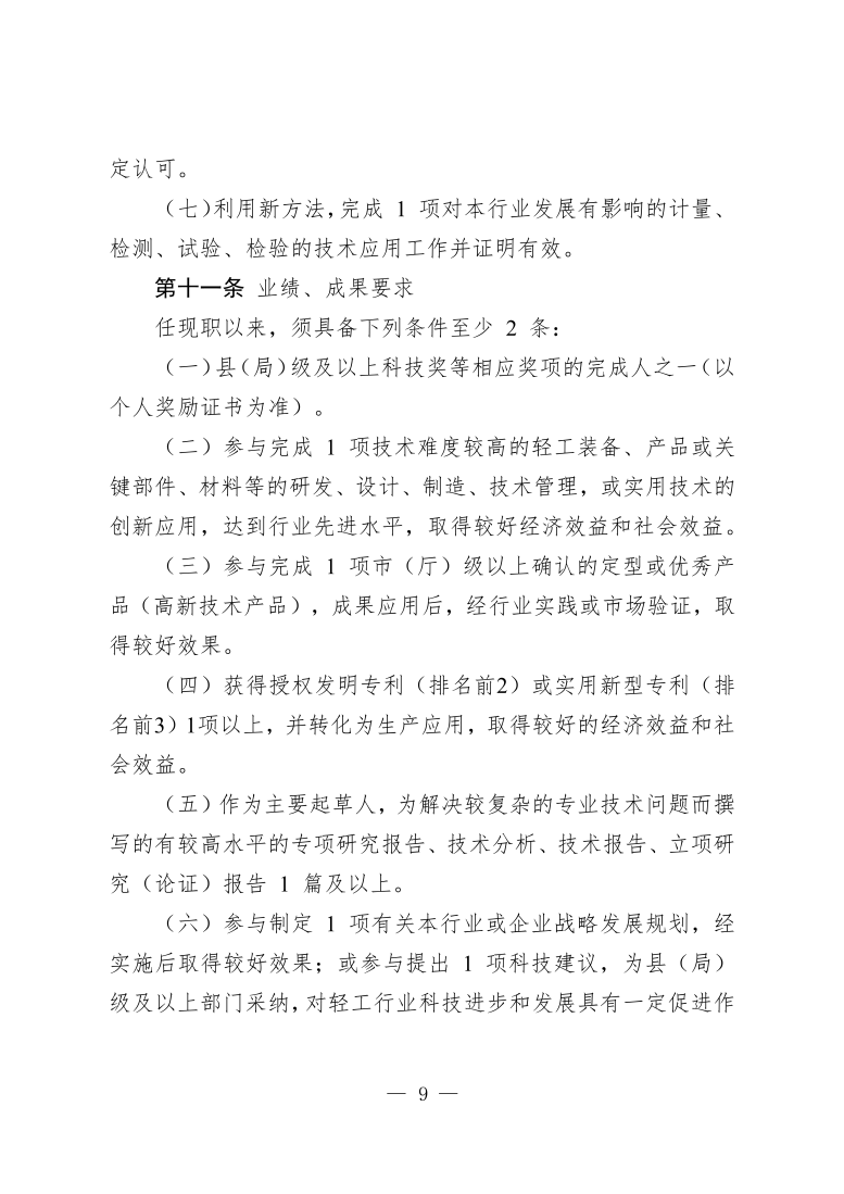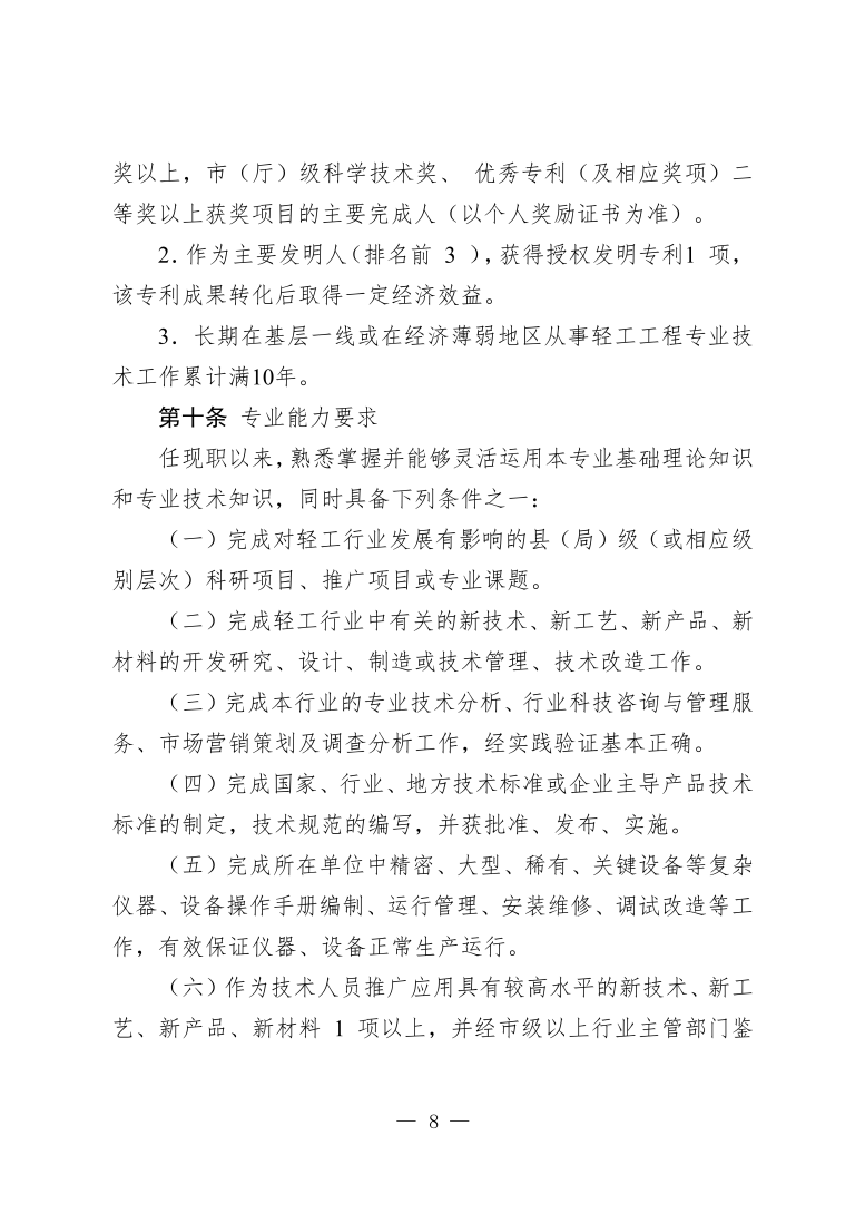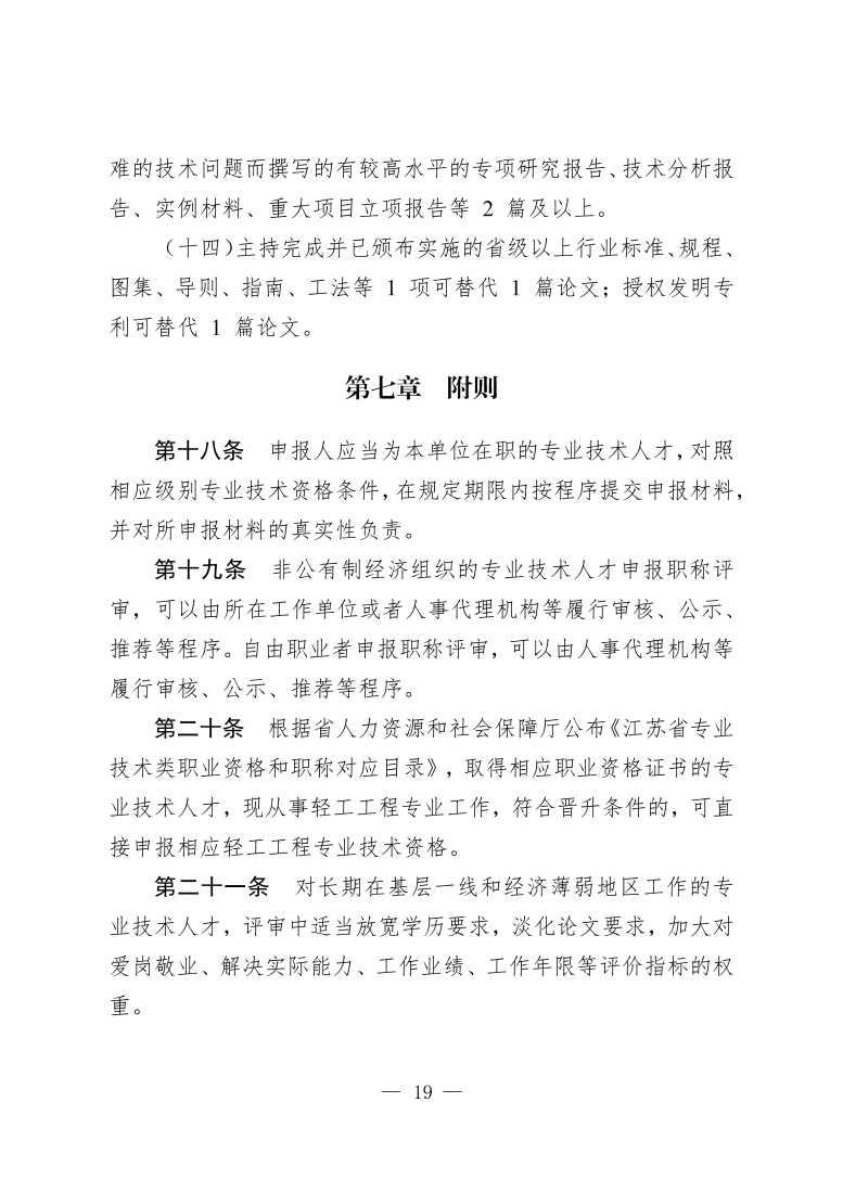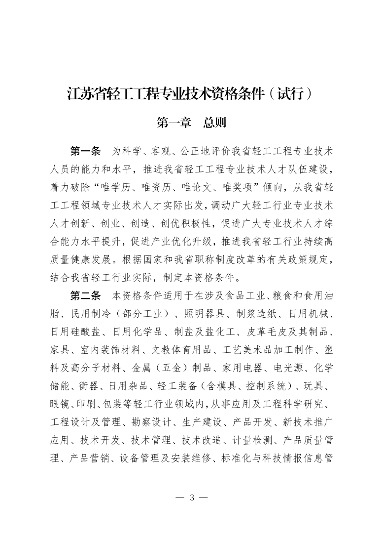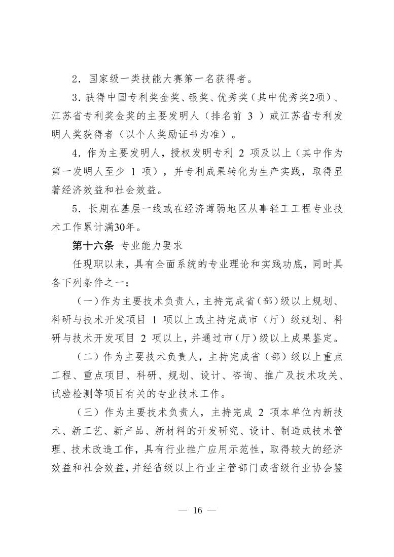 江苏省轻工工程专业技术资格条件(试行)(苏职称〔2021〕21号)