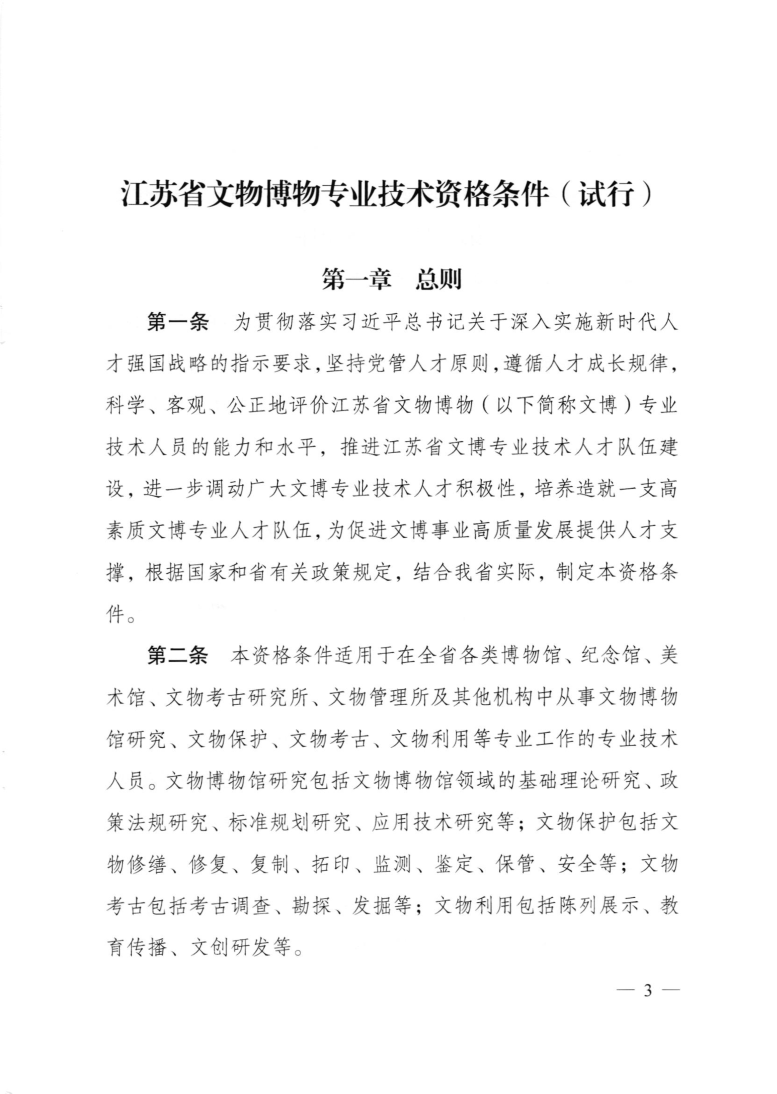 江苏省文物博物专业技术资格条件(试行)(苏职称〔2021〕68号)